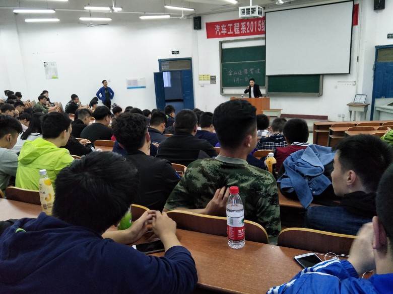 十堰顺凯工贸有限公司经理彭号和湖北帕菲特工程机械有限公司区域销售经理刘瑞同为太阳官网汽车系08级优秀毕业生。彭号与同学们分享了创办企业的过程,同时也介绍了企业的组织架构管理、文化建设、设备采购、生产管理、质量管控等企业管理流程,让学生对企业的经营管理有了较清晰地认识。