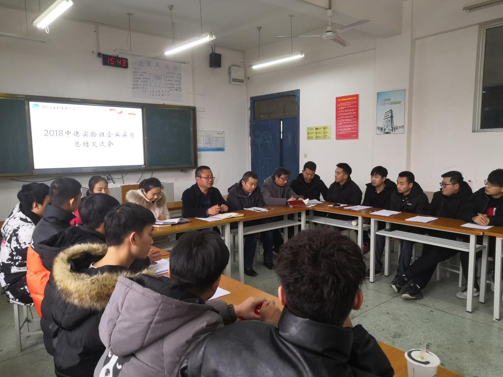 新闻网讯(通讯员 陈东)“在12天的实习过程中,我从师傅身上学到了不少东西,也跟他们结下了深厚的感情,毕业时我想回这家企业工作......”一名2018级中德实验班同学在发言时诚恳地说。1月2日下午,2018级中德实验班在5307教室召开了企业实习总结交流会。交流会由汽车检测与维修技术专业负责人陈东主持,太阳集团tyc33455官网领导班子、各专业负责人和教师代表参加了交流会。