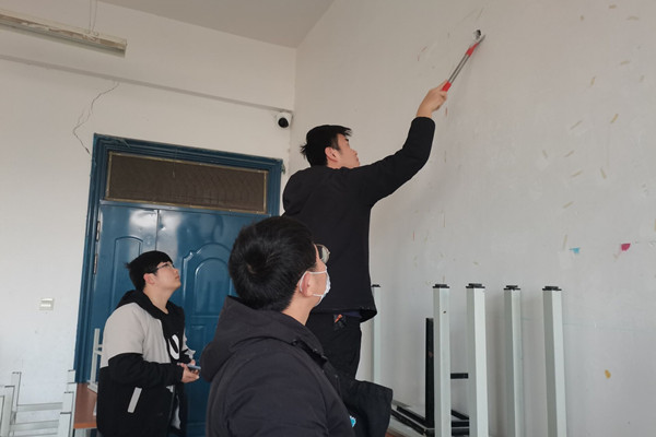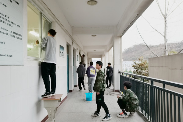 该院各班同学利用下午放学后的时间,按照提前分配的卫生区域,走进每个教室,拿着抹布、扫帚、拖把、清洁铲刀和去污剂等工具,对各个教室的地面、桌椅、门窗、黑板、墙壁以及窗户窗台进行了全方位、深层次的打扫,严格做到了地上无垃圾、门窗无灰尘、墙上无污痕、卫生无死角、桌椅摆放整齐。