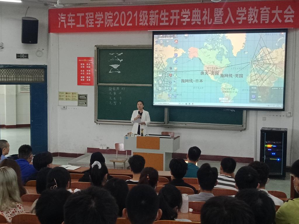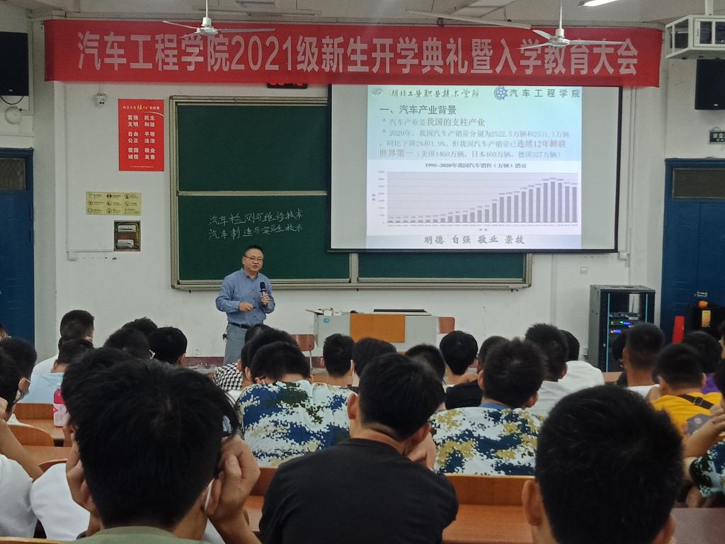学院党总支书记张玲致欢迎词,她对2021级新同学们提出殷切的希望,希望同学们学会主动适应、学会自我管理、学会交流沟通、担当作为,回报社会,并表达了学校对全体同学的深切关爱和热烈欢迎。院长张健从汽车产业背景、汽车发展趋势、太阳集团tyc33455官网专业概述及建设规划等方面给同学们做了详细的介绍,鼓励同学们要热爱专业、勤学苦练、学有所长。副院长余元强针对同学们感兴趣的五个特色订单班的设置、教学、就业等方面进行了专题讲解,希望同学们结合兴趣理想选好特色专业、学好专技特长。各专业负责人从本专业的课程设置、知识结构、技能水平、就业优势等方面,全面向同学介绍了各专业的发展方向和职业规划,引导同学们了解专业、热爱专业、学好专业。下午,2021级新生辅导员分别为新生做了适应性教育及疫情防控专题提醒。