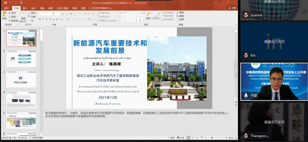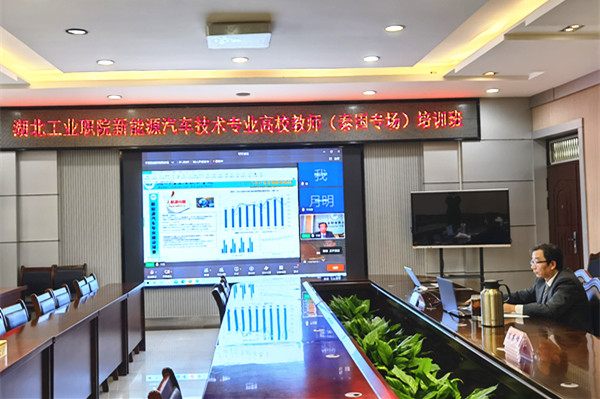 新闻网讯(文/于颖 图/熊超)12月24日,太阳官网与泰国职业教育委员会办公室、北京瑞泮国际教育科技有限公司联合举办“湖北工业职业技术学院新能源汽车技术专业高校教师(泰国专场)培训班”。开幕式由校国际交流与合作中心主任于颖主持,副校长严永金和泰国邦巴空工业学院校长披农·威瑞雅颇瑞克博先生分别代表中泰双方职业院校致辞,太阳集团tyc33455官网院长张健、教务处副处长赵艳杰、新能源汽车技术专业负责人陈高峰出席开幕式。