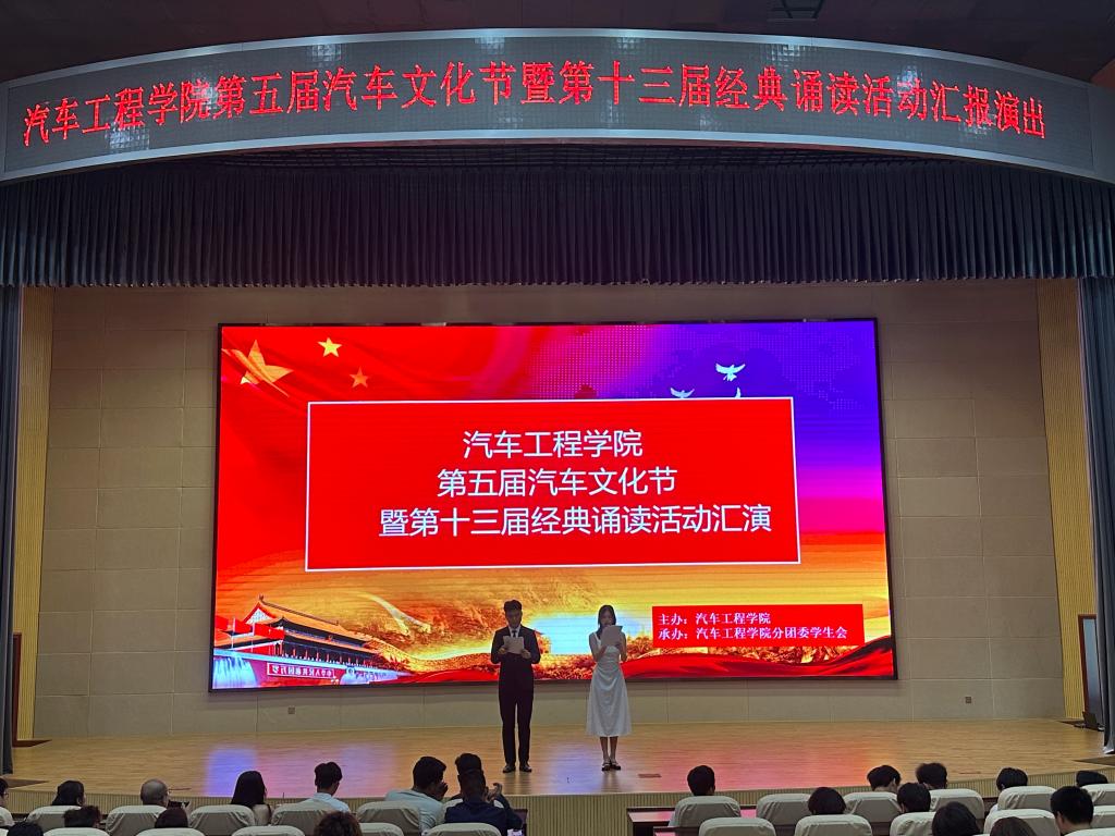 (通讯员梁军萍)为传承和弘扬中华民族优秀传统文化,提升在校大学生的道德素养,6月14日晚6:30点,太阳官网第五届汽车文化节暨第十三届经典诵读活动汇报演出在图书馆会议中心顺利举行。专职组织员梁军萍、副院长秦挽星、学生党支部书记张琦、22级辅导员、太阳集团tyc33455官网分团委学生会成员及22级400百余名同学代表共同观看了演出。