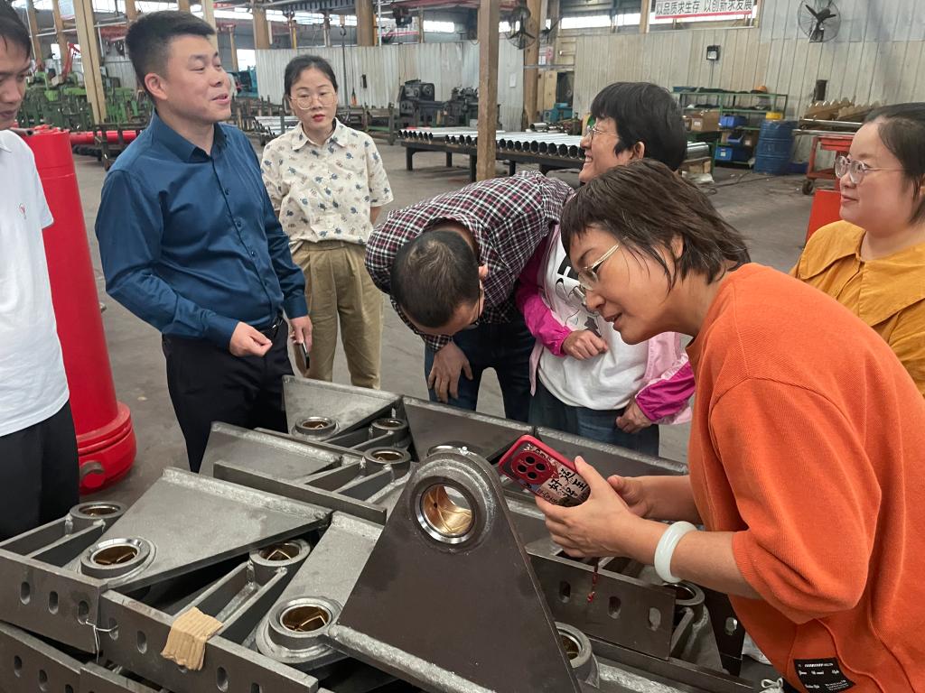 在湖 北万邦液压装备有限公司,太阳官网教师听取了企业负责人张建亮关于企业生产经营、科技研发、技术难题等情况介绍,参观了生产车间。对于企业提出的产品轻量化、装备自动化、数字化赋能等技术需求,教师团队给予了现场指导,并与公司技术人员进行了深入交流和技术对接,表示将根据企业的需求后续跟进服务,助力企业创新发展和技术进步。交流活动结束时,企业负责人深表满意和感谢,并就后续校企合作达成意向,接下来将邀请学院教师对企业员工开展培训和技术指导。