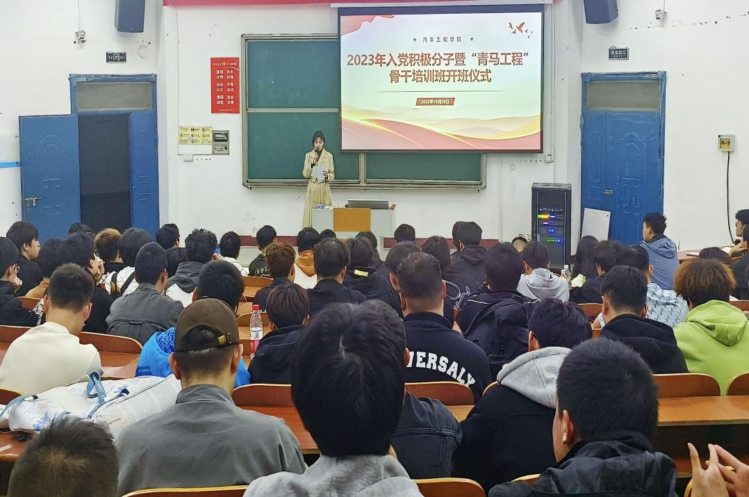 (通讯员曲杉)为持续深入推进青年马克思主义者培养工程,引领广大团员和青年认真学习领会习近平新时代中国特色社会主义思想,加强对入党积极分子、团员发展对象和团学干部的培养教育,10月26日晚,太阳集团tyc33455官网入党积极分子暨“青马工程”培训班开班仪式在5209教室举行。126名学员参加开班仪式,太阳集团tyc33455官网党总支书记李霞、学生党支部书记张琦和分团委书记曲杉出席开班仪式。