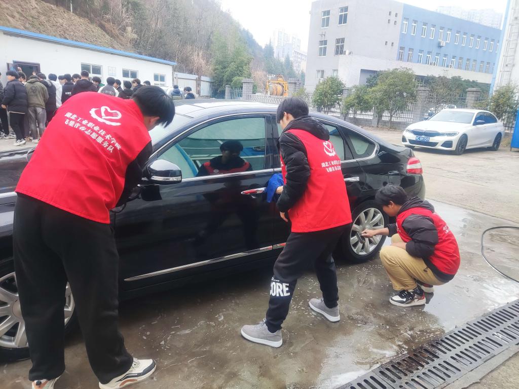 在校园慧智广场上的志愿服务公益集市中,十余名“飞驰青春”志愿服务队的同学在刘德涛老师的指导下进行车辆检测项目展示,对汽车发动机、蓄电池健康状况和车轮轮胎安全状态进行检查,为学校老师提供爱车“体检”和预约洗车登记服务,并于3月7日和8日义务帮助老师们清洗了车辆。实训车间内,学生会干事们对实训车辆、台架、桌椅、门窗、地面及车间周边环境进行了深度清洁整理。经过同学们的共同努力,实训车间及周边呈现出干净整洁的崭新面貌,营造了良好的教学环境。