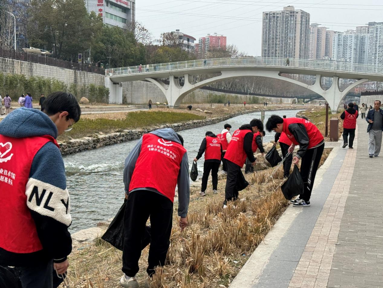 3月5日当天,在“大学生社区实践计划”的结对社区中,志愿者们分别在郑家沟社区和锦绣园社区开展活动。邢彬、张琦老师带队联合茅箭区二堰街道郑家沟社区开展“学雷锋·文明实践我行动”主题活动。活动现场,志愿者们身穿红马甲,发扬不怕脏、不怕累的精神,相互配合,仔细对散落在河道里、花坛边的垃圾进行捡拾处理。同时,向附近群众宣传河道生态环境保护相关知识,劝导附近居民对在河道内乱扔垃圾等不文明行为进行抵制,呼吁大家共同维护良好的河道生态环境。在锦绣园社区,志愿者们对社区环境卫生进行了深度治理,受到了小区住户们的一致好评。
