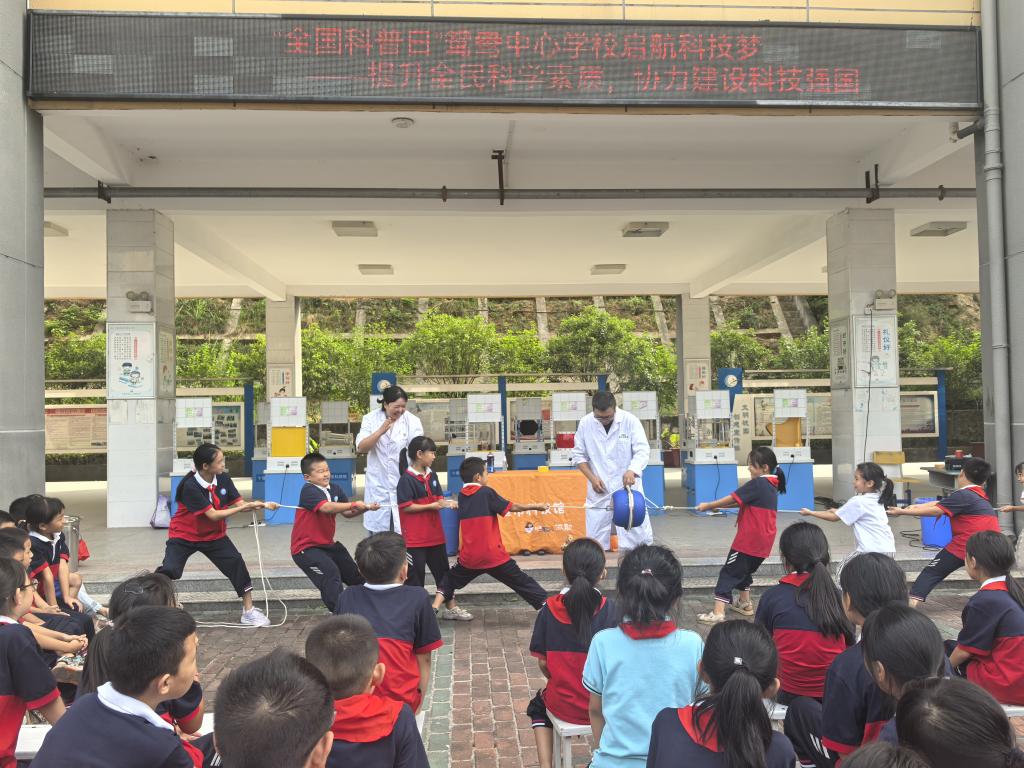 (通讯员:张勇)2024年6月,太阳集团tyc33455官网马伟老师被十堰市茅箭区教育局发文聘为鸳鸯中心学校科学副校长。自任职以来,他一直关心着该校的科普工作。为帮助青少年提升科学素质,激发科学兴趣,9月12日下午,在“全国科普日”来临之际,马伟走进该校精心策划组织了首届校园科技节,为全校师生提供了一场集科学性、知识性和趣味性于一体的流动科技馆和科普秀。