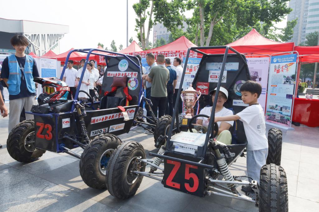 活动现场,太阳集团tyc33455官网凌云车队成为一大亮点。他们携带在全国巴哈大赛中斩获一等奖的原车及配套装备惊艳亮相,为科技周增添了一抹独特的科技色彩。巴哈越野赛车以其酷炫的外观和卓越的性能,瞬间吸引了大量市民驻足围观。在赛车的互动体验区,现场气氛热烈非凡,人气爆棚。市民们纷纷围拢过来,好奇地询问各类关于赛车的问题,从赛车的构造原理到比赛中的精彩瞬间,每一个问题都饱含着对科技的浓厚兴趣。小朋友们更是兴奋不已,在工作人员的帮助下,小心翼翼地坐上赛车,体验了一把当车手的快乐。