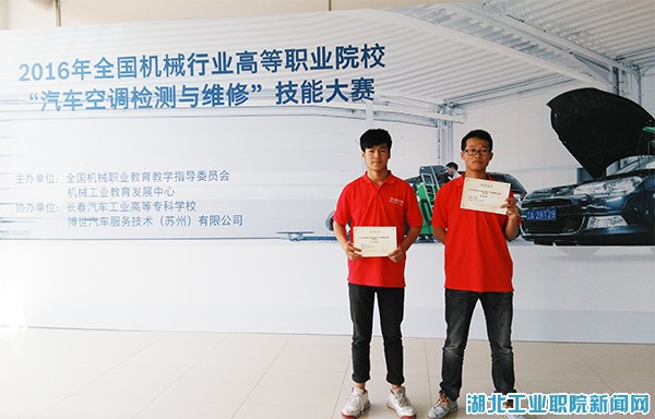 (通讯员 刘德涛 陈林)为进一步探索产教深度融合与发展新机制,搭建竞技与交流平台,提高人才培养质量,6月1日至2日,在长春举办的“2016年全国机械行业高等职业院校‘汽车空调检测与维修’技能大赛”,经过2天激烈角逐,圆满落幕。比赛中,太阳官网2名参赛选手——2014级中德实验班王涛、徐浩翔同学以扎实的知识、精湛的技术,在众多参赛队中脱颖而出,获得1个二等奖和1个三等奖,为学院争得了荣誉。
